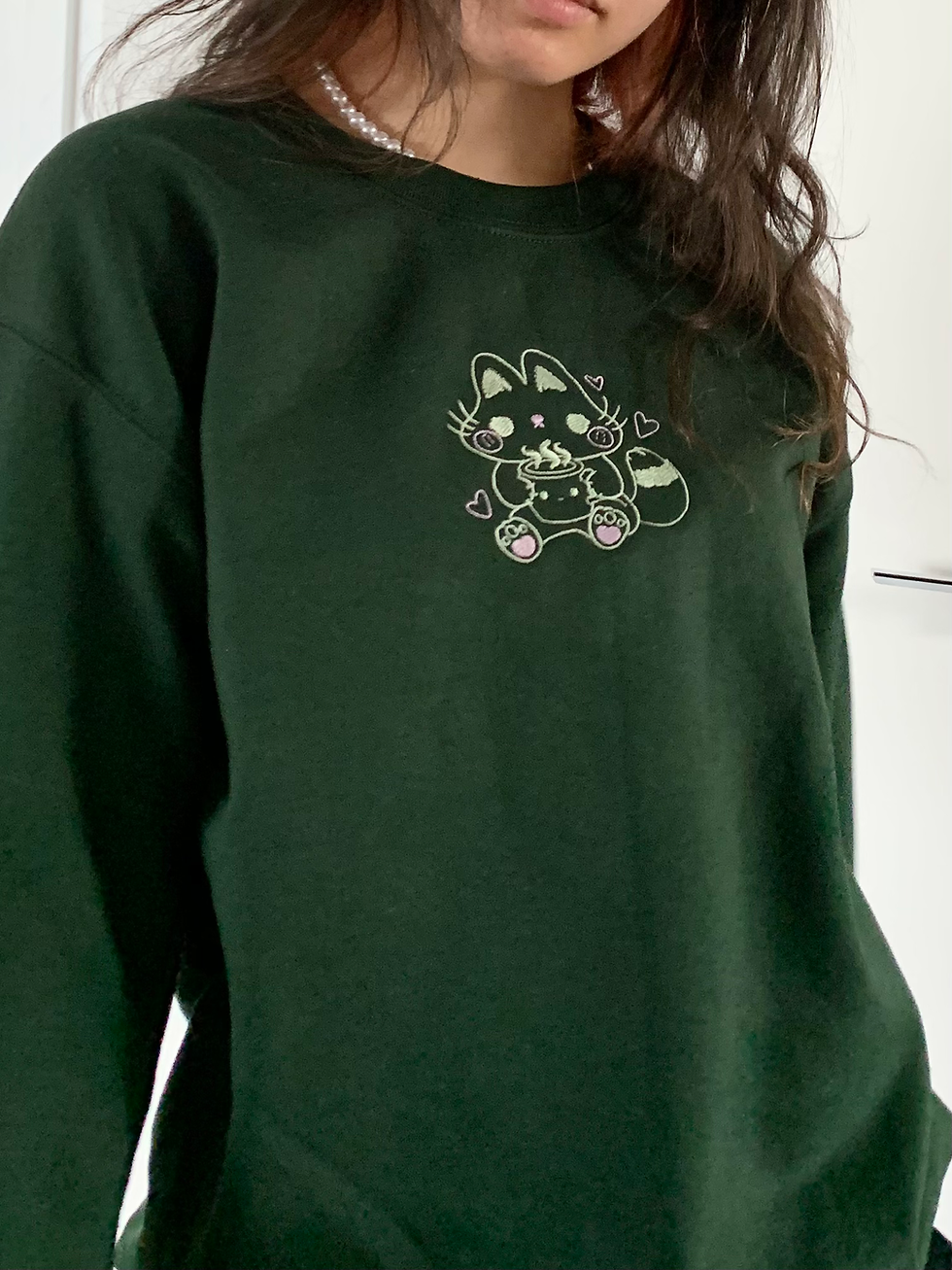 Coffee Cat Embroidery Crewneck Sweatshirt